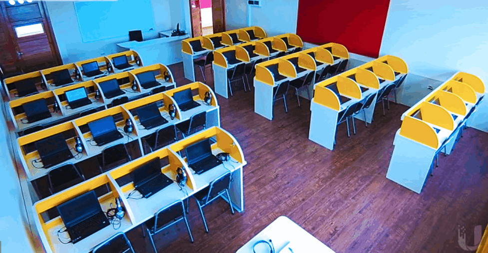 Estos laboratorios son espacios diseñados e implementados para la práctica de idiomas. Complementa el marco teórico impartido en el aula a través de diversas herramientas que permiten a los alumnos practicar expresión oral, escrita y lectora. Cuenta con herramientas para que el docente monitoree en tiempo real el trabajo que desarrollan los alumnos.