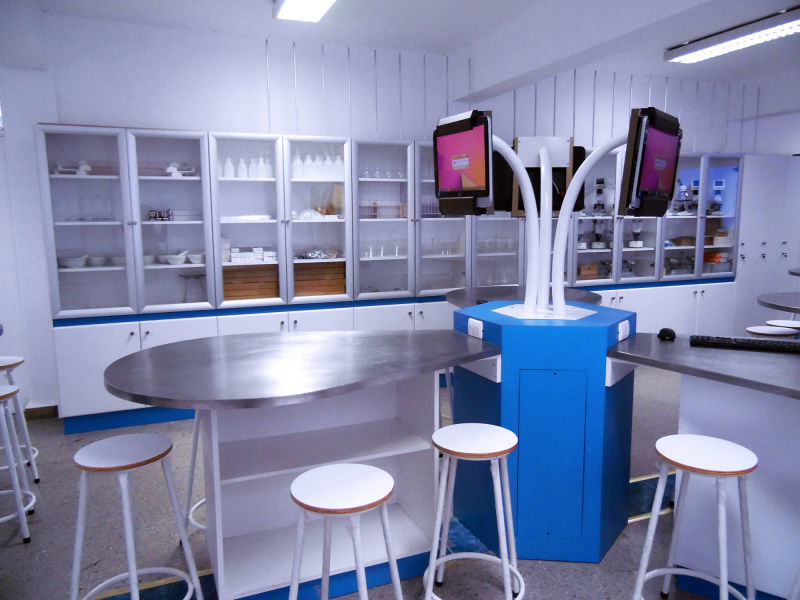 Solución de Laboratorio para aquellos establecimientos que no cuentan con sala para el desarrollo de laboratorios. Cuenta con completo equipamiento en Biología y Química para primer ciclo básico (1° a 6° de Enseñanza Básica).
